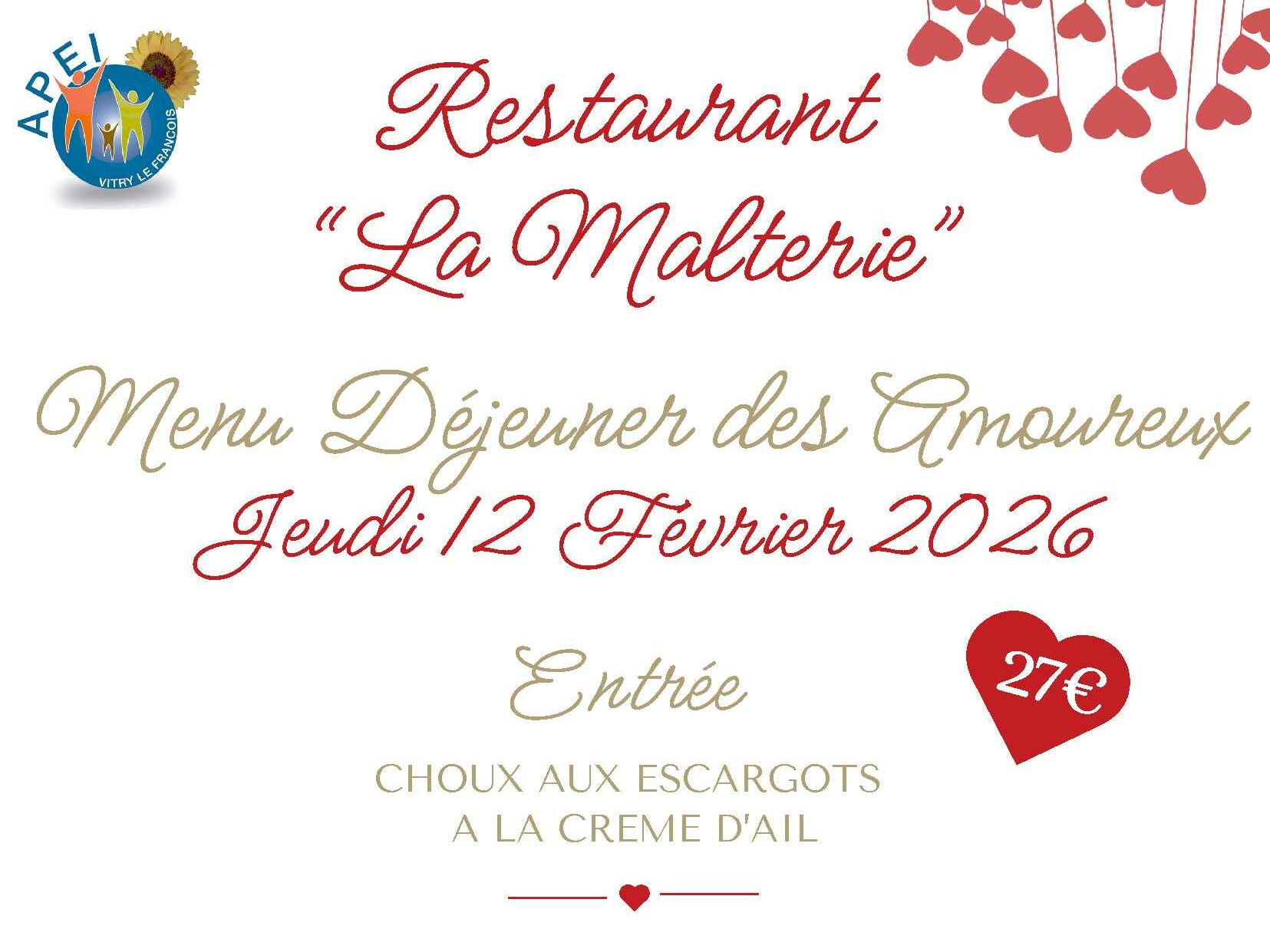 Réservez dès maintenant pour un repas en amoureux au sein de notre restaurant La Malterie. Retrouvez le détail sur la page A.P.E.I Vitry le François | Restaurant « La Malterie » – APEI