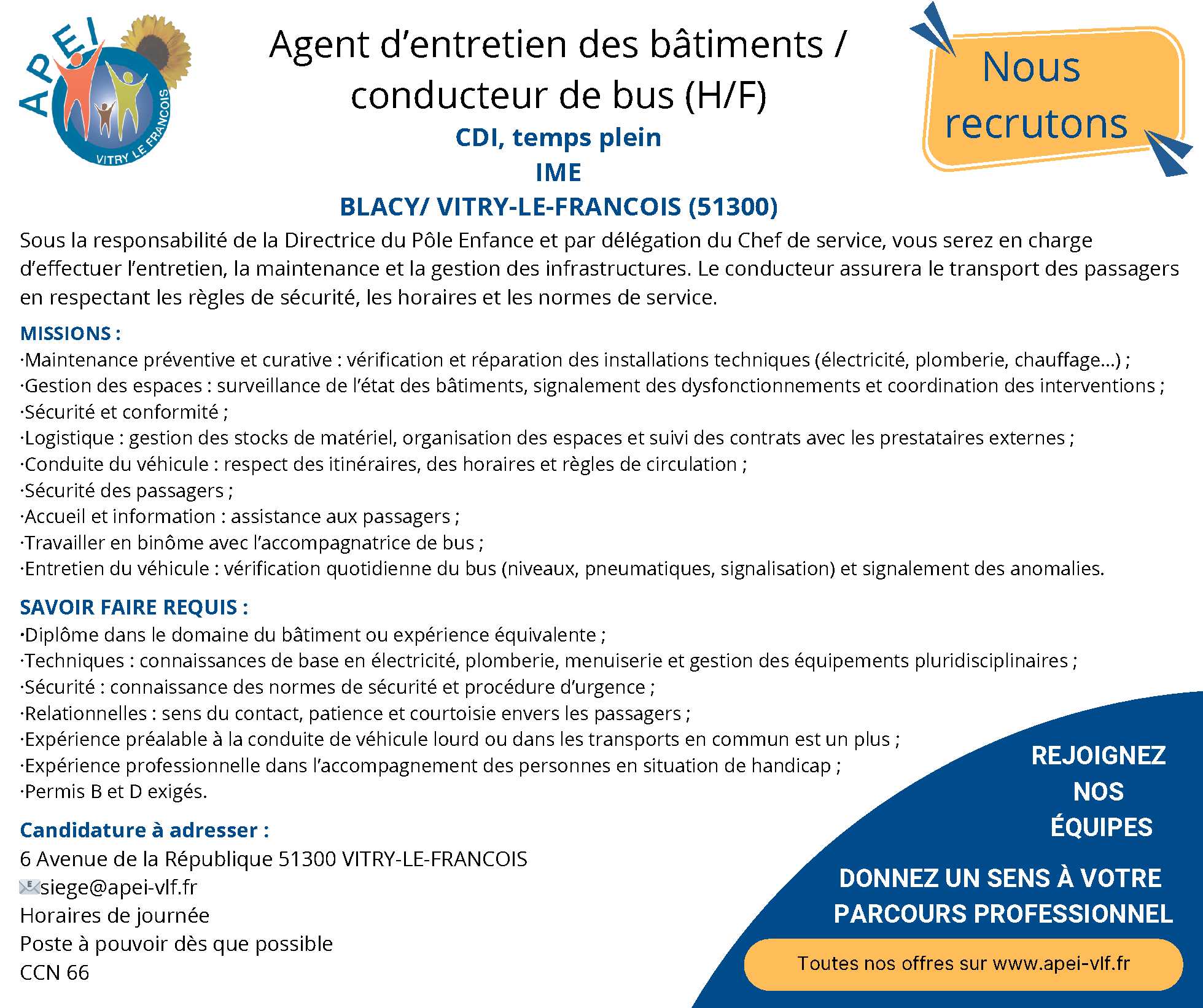 1 Agent d’entretien des bâtiments Conducteur du bus (H/F)