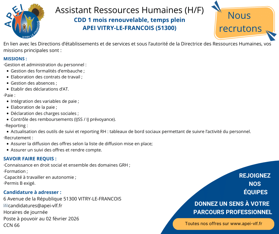 L’APEI de VITRY LE FRANCOIS recrute